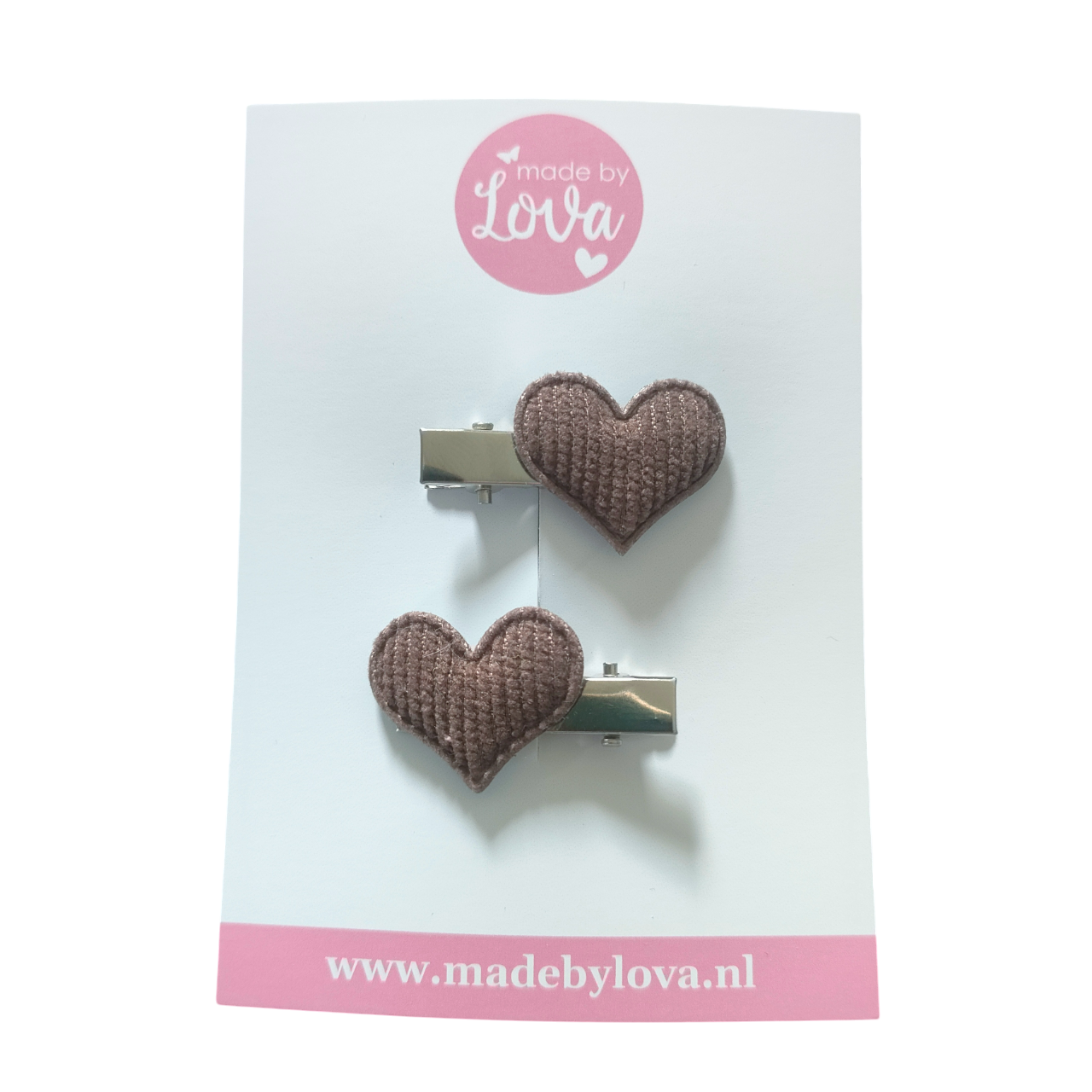 Een klein hartje met rib structuur in de kleur bruin. Leuk om het hele jaar door te dragen.