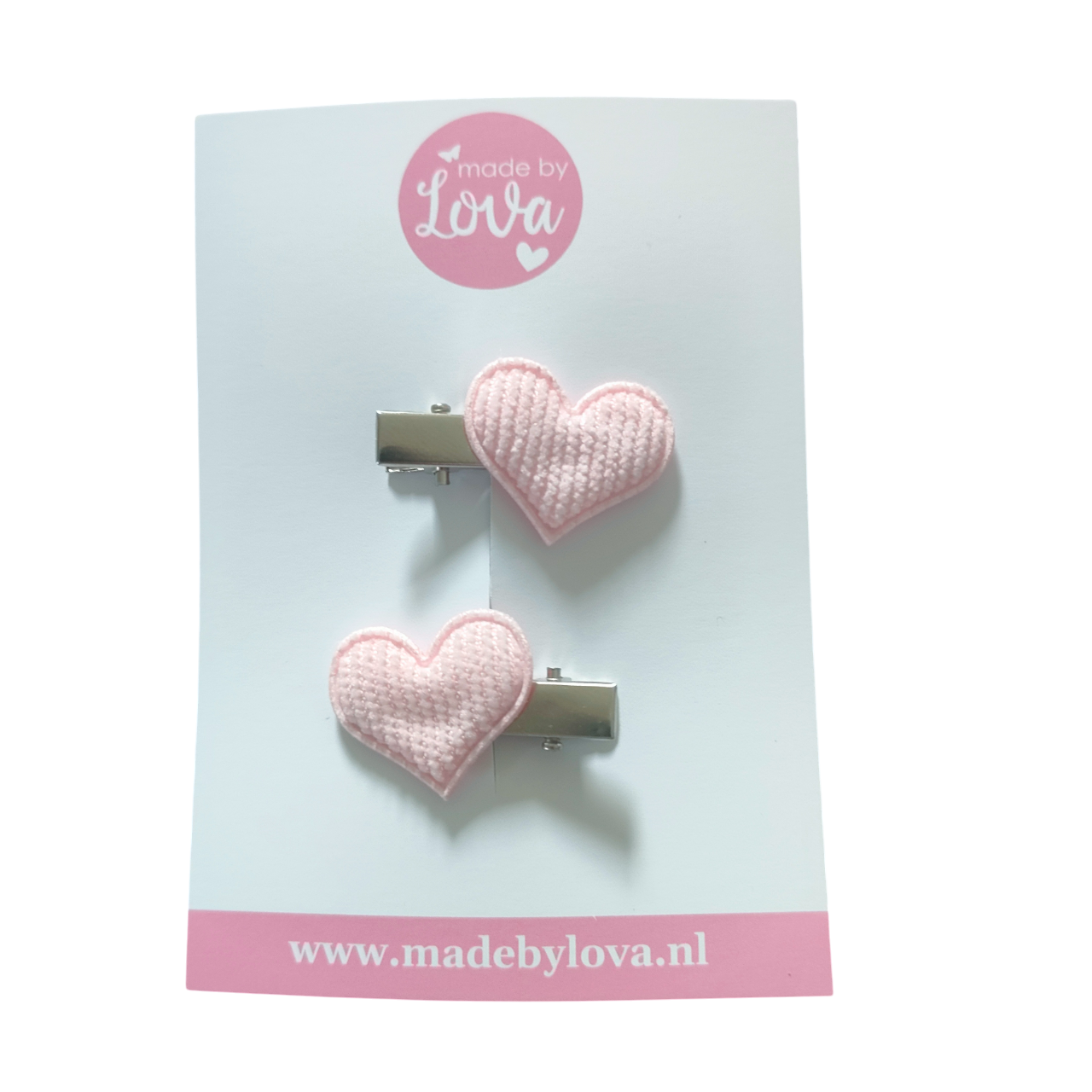 Een klein hartje met rib structuur in de kleur lichtroze. Leuk om het hele jaar door te dragen.