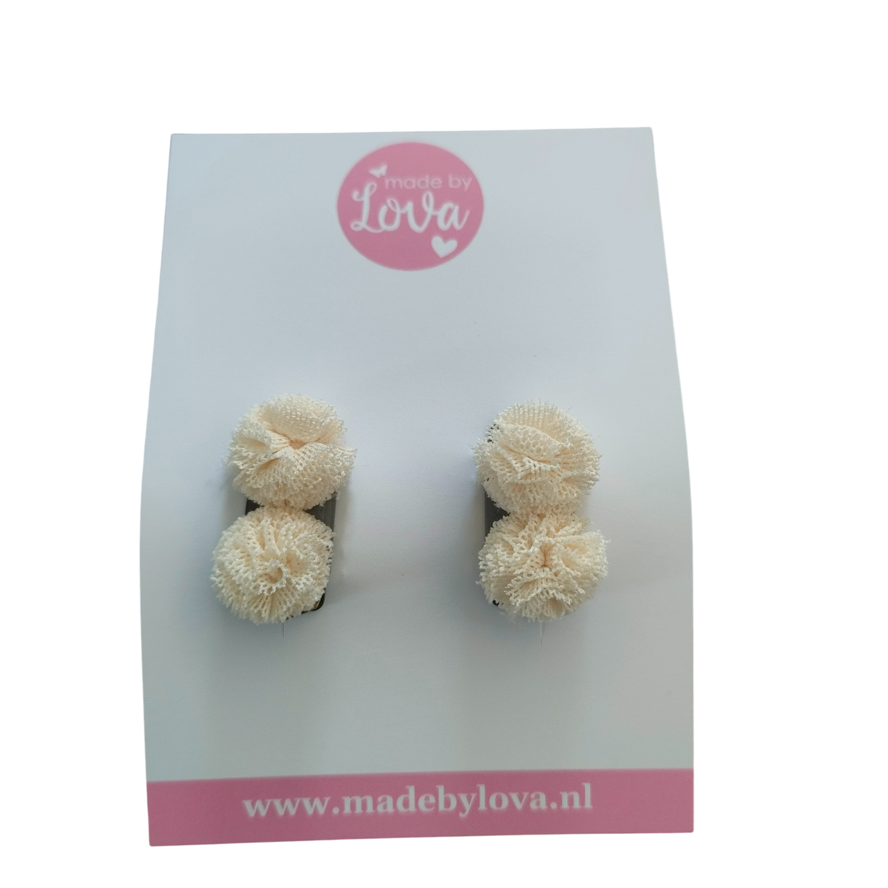 – De pompoms zijn 15 mm en zijn bevestigd op een antislip speldje van 32 mm.
