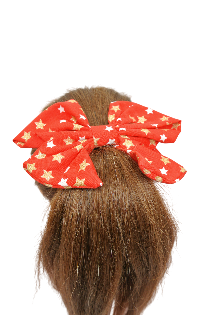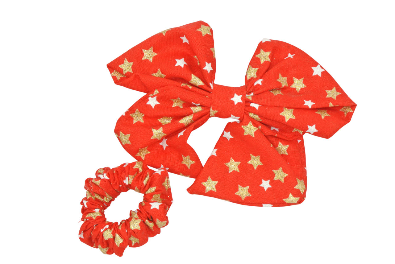 haarstrik & scrunchie rood sterren glitter