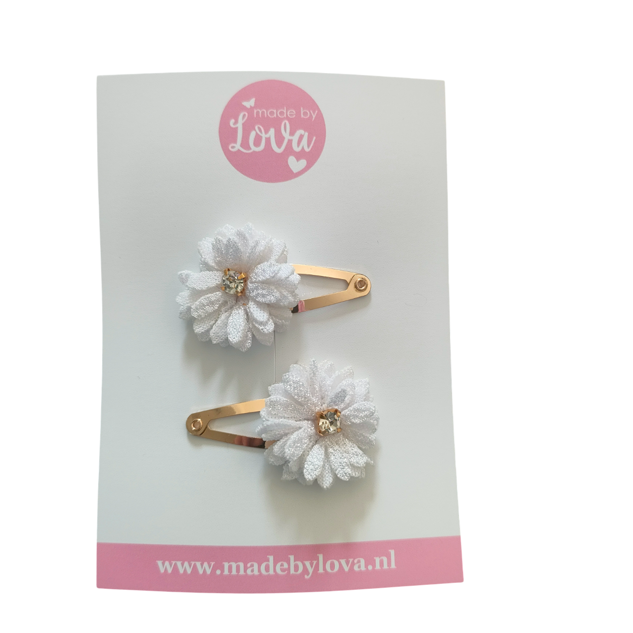 Het strassteentje in het midden van het bloemetje, laat deze haarspeldjes er luxe uit zien.