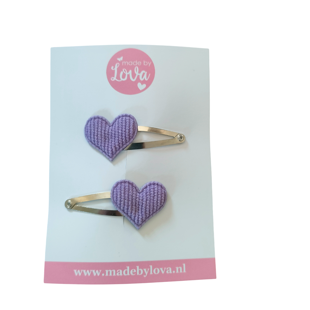 Een klein hartje met rib structuur in de kleur lila. Leuk om het hele jaar door te dragen.