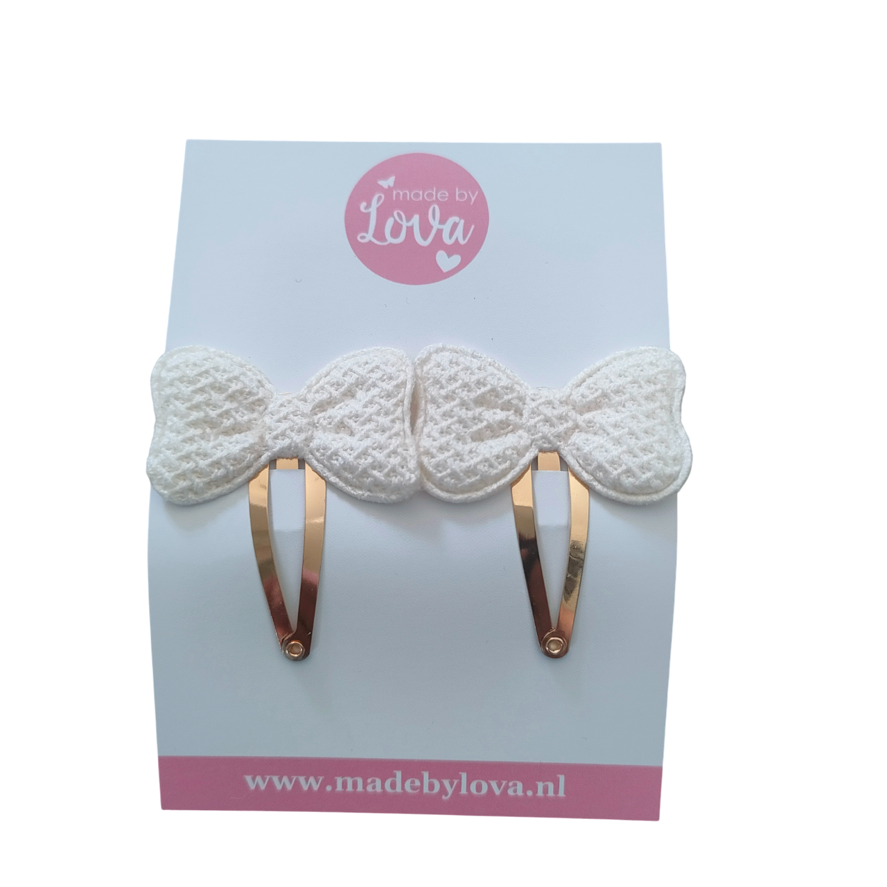 – De strik heeft een afmeting van 40×25 mm en is bevestigd op een klikklak speldje van 4,8 cm.