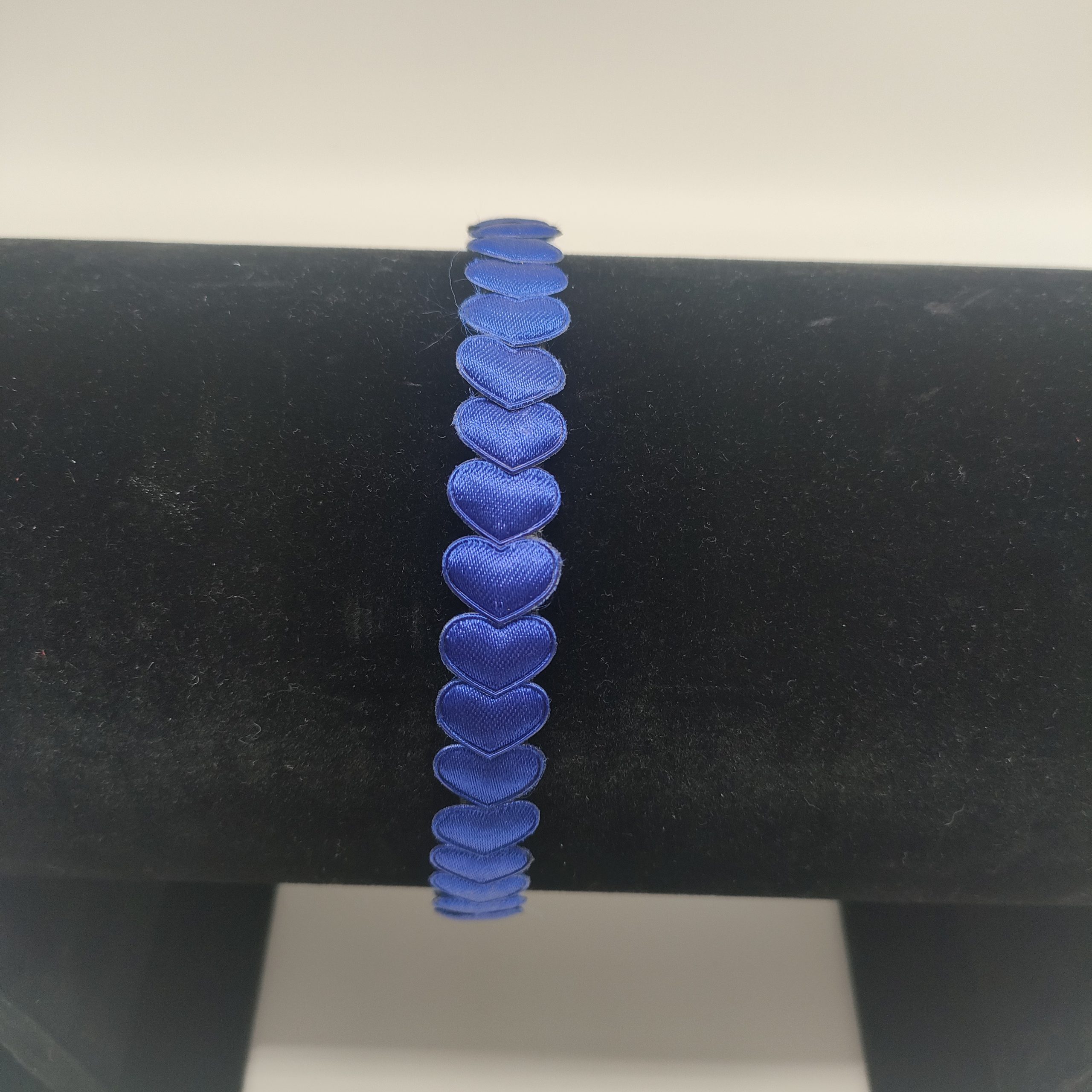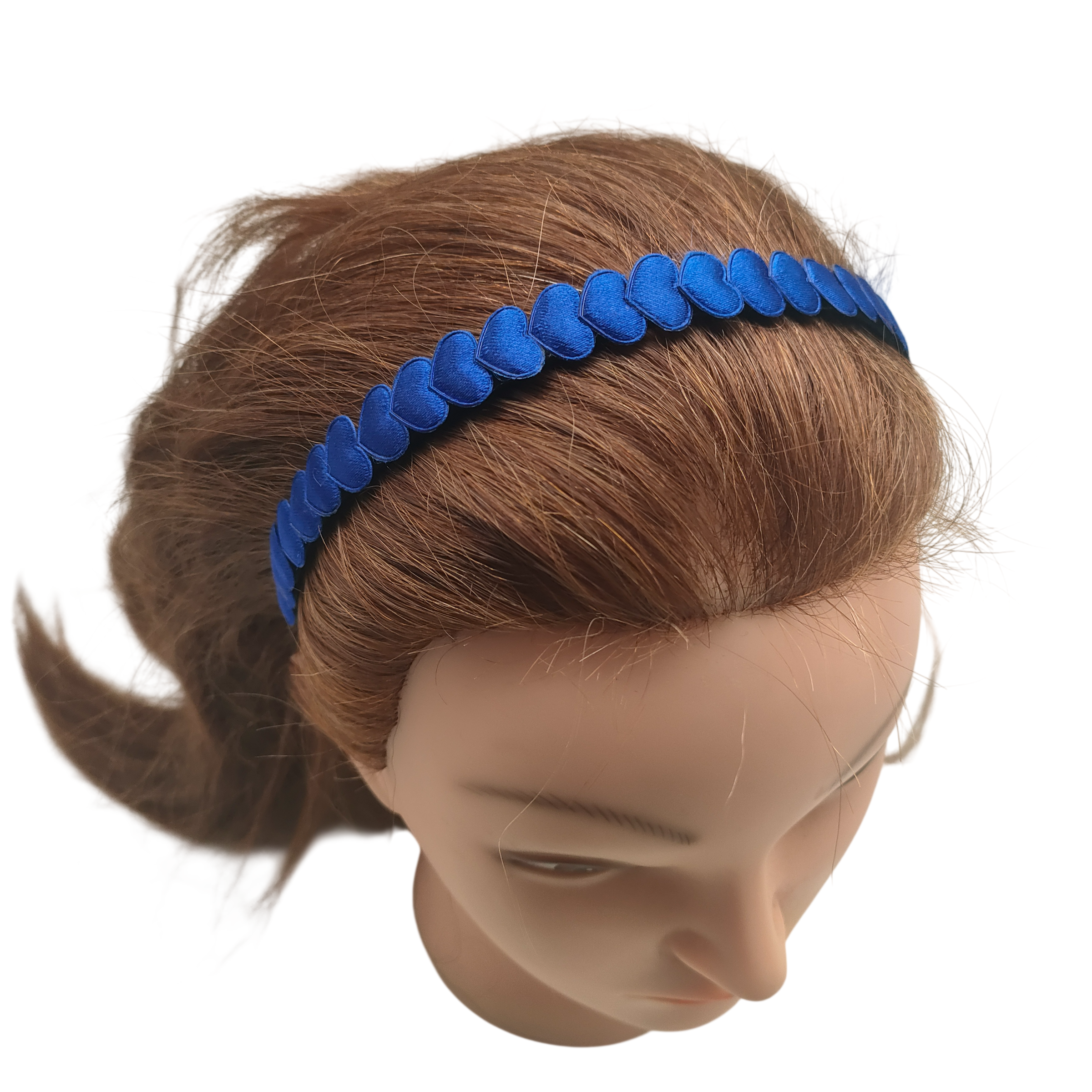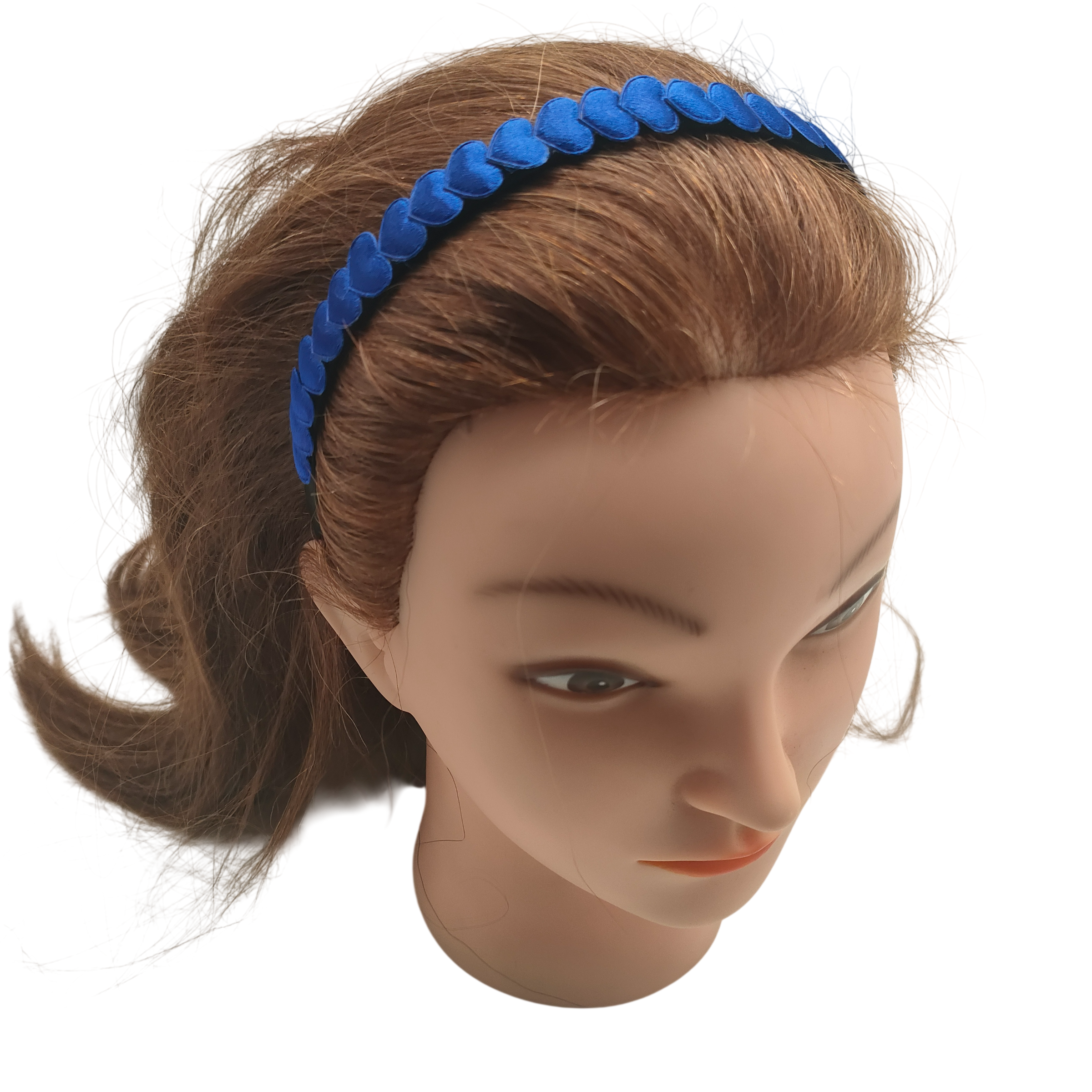 Prachtige donkerblauwe hartjes op een zwart satijnen diadeem.