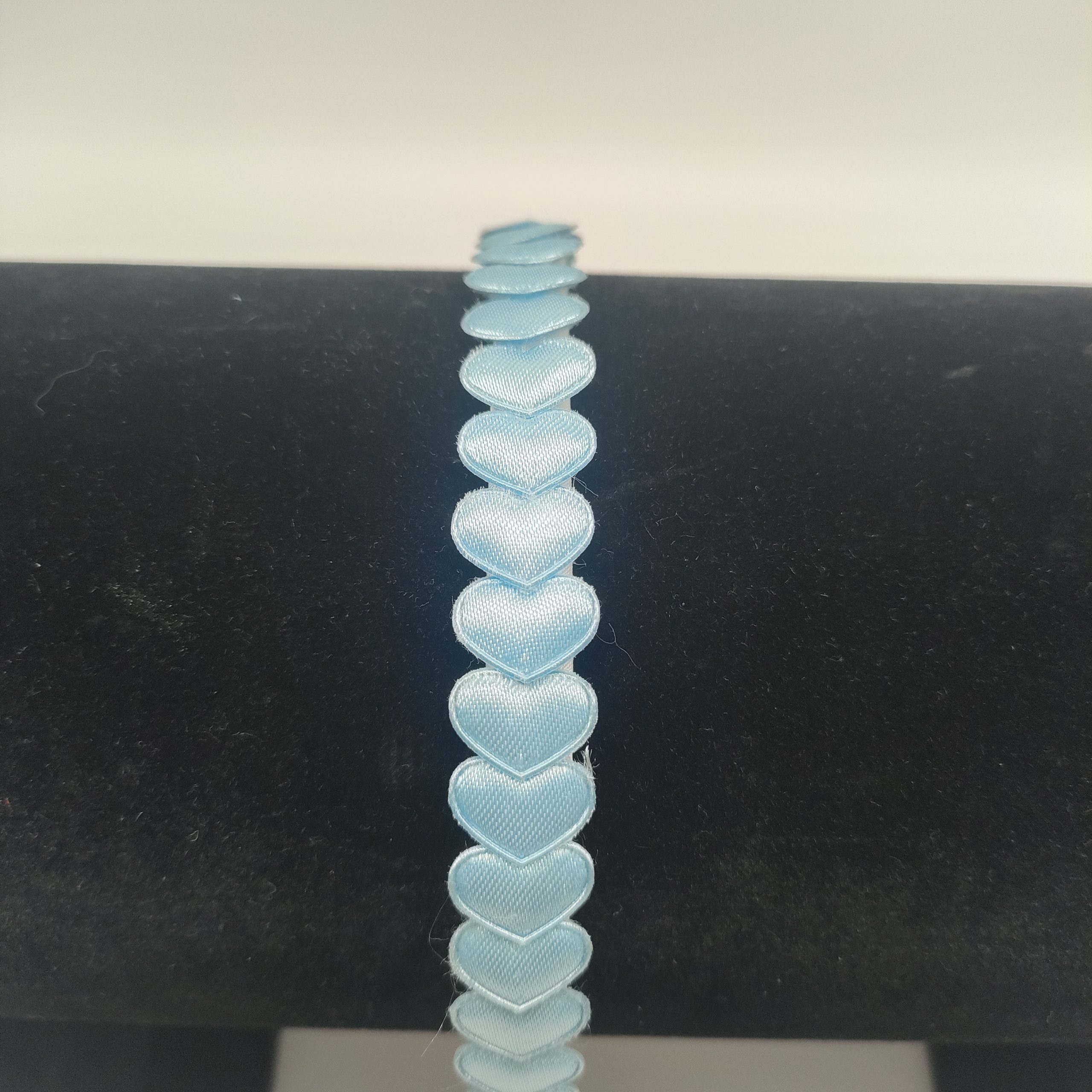 Mooie lichtblauwe hartjes op een witte diadeem.