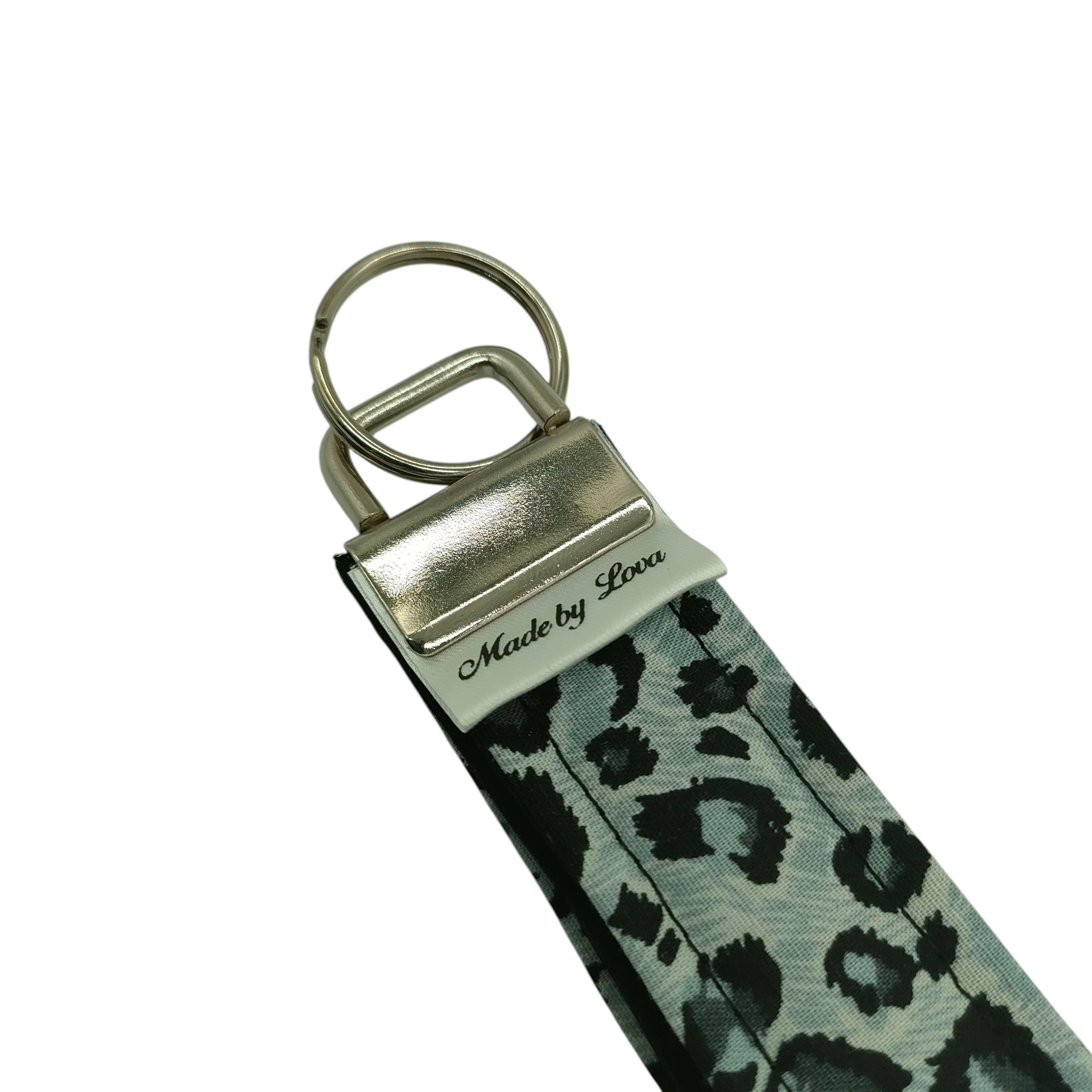 Sleutelhanger / telefoonkoord panterprint zilver